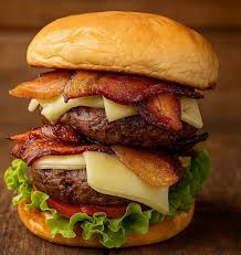Pão brioche, hambúrguer 120g, queijo, bacon, alface, tomate, barbecue e maionese de alho.